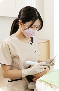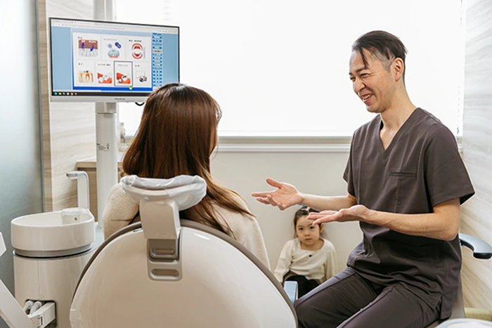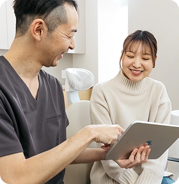 患者さま一人ひとりのご希望やお口の状態に合わせた治療計画をご提案します。できるだけ歯を削らず、抜かずに残すことを重視し、お悩みやライフスタイルにも配慮した選択肢をご用意。治療内容や期間についても丁寧にご説明し、安心して治療を受けていただけるよう心がけています。